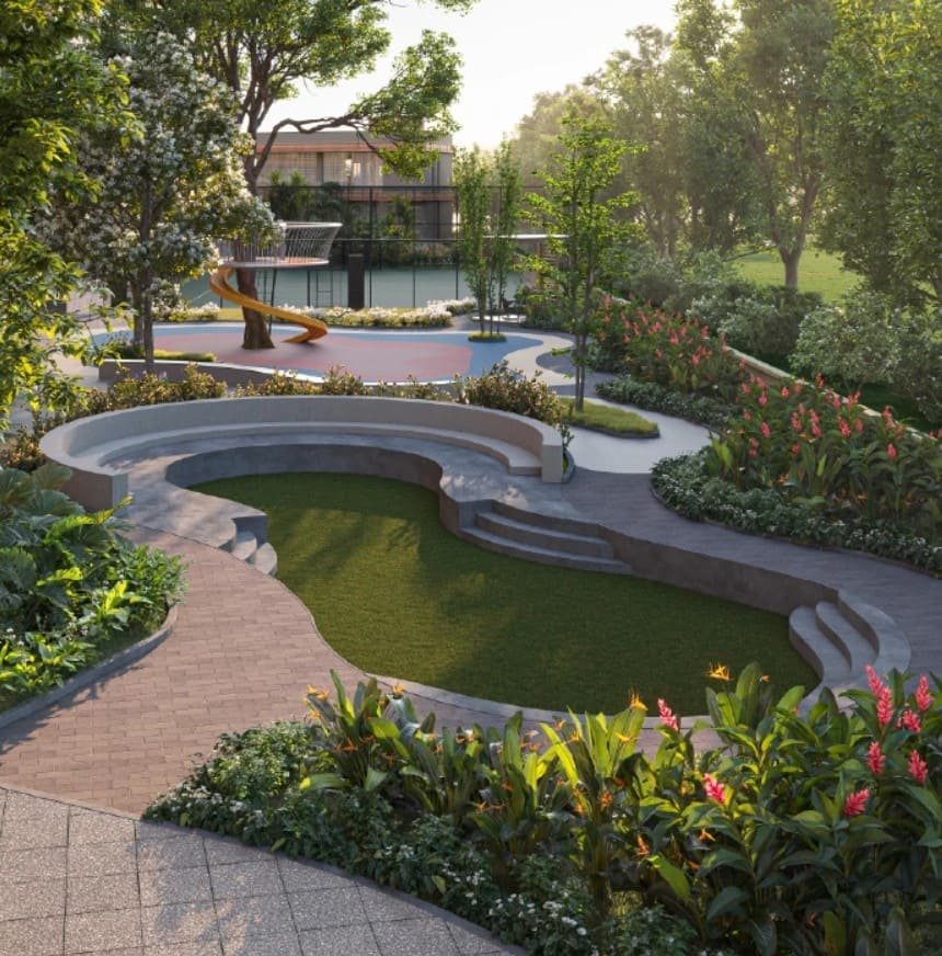 Rainwater harvesting systems make sure water is used efficiently, and solar lighting brightens up common areas in an eco-conscious way. The beautifully landscaped green spaces feature native plants to cut down on water usage, and organic waste management systems help keep the community clean and balanced.